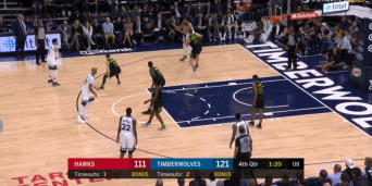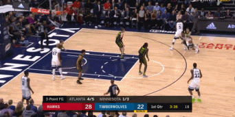 面对这样的老鹰,森林狼胜出没太大悬念。开场后,双方大举对攻,首节森林狼并没占到太多便宜,只以34-32领先。