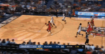 灰熊第二节放手对攻。本节还有3分49秒时,布鲁克斯快攻上篮得手,他们只以42-49落后。霍乐迪还以三分,戴维斯此后也篮篮下得手,鹈鹕重新取得两位数的优势。本节双方都得了30分以上,鹈鹕砍下33分,以65-53领先。