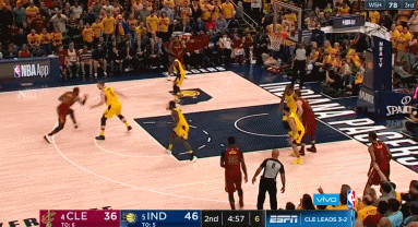 第二节开始后,步行者逐渐扩大领先优势,这使得詹姆斯不得不尽快上场。本节还剩5分多钟,步行者2打1快攻,萨博尼斯在詹姆斯的面前完成扣篮。紧接着,詹姆斯单挑萨博尼斯,他突破之后打了萨博尼斯一个2+1。