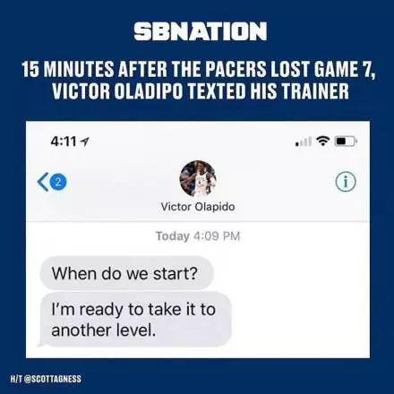 据报道,系列赛结束15分钟后,奥拉迪波的训练师在Instagram上晒出奥拉迪波给他发的短信,内容如下:我们什么时候开始训练?我已经准备好迈向另一个级别了。