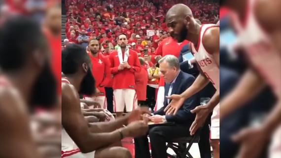 哈登&保罗场边激烈争吵
