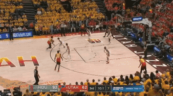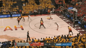 下半场刚开始,米切尔就持球强攻火箭的篮下,但是未果,反而被火箭打反击成功。过了没多久,米切尔在三分线外对哈登犯规,并把哈登送上罚球线。