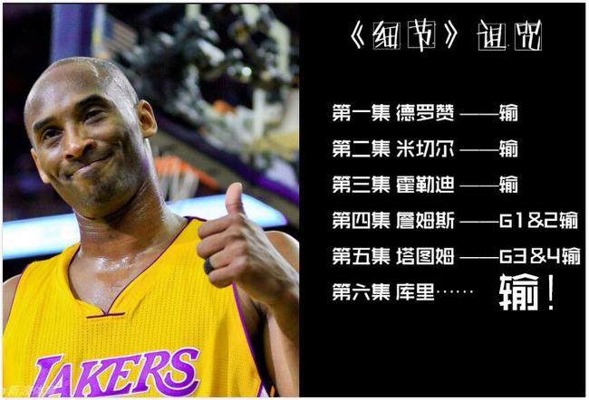虽然库里今天在第三节突然爆发,单节独得17分,但是他在第四节突然低迷,只得到3分,而勇士队也输掉了比赛。很遗憾,库里也没能逃过科比的《细节》诅咒。