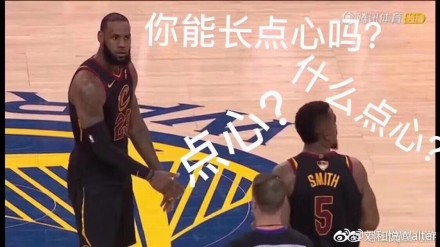 羊習習-黃:詹姆斯:论智慧跟武功呢,我一直高库里一点点,但是现在多了个杜兰特,他恐怕高我一点点了。jr:这边有我嘛!詹姆斯:就是因为多了你这个累赘,他才会高我一点点