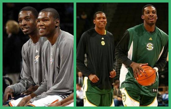 “2007年选秀,杜兰特首轮第二顺位加入西雅图超音速,格林在第五顺位被凯尔特人选中后也被交易到超音速。两个发小在同一支球队里圆了NBA梦。他们俩每一个休赛期都在一起训练,互为导师和榜样,俩人在一起只干两件事,一起无休无止的练球,一起做慈善。”