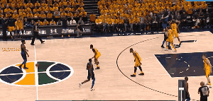 在爵士用侧翼对他贴身紧逼后,他想突破对方协防立马逼上来,本来传球意识就薄弱的乔治突破未果只能频频选择干拔跳投,整场比赛的6次失误有一半是在对方协防和紧逼下自己过于蹩脚的运球技术造成的,重心太高,护球不够。