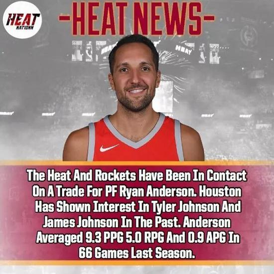 据NBA记者扎克-洛维报道,火箭近期一直在与热火商谈有关安德森的交易,火箭有意热火队的约翰逊兄弟——泰勒-约翰逊和詹姆斯-约翰逊
