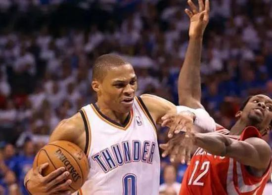 直到5年前的那一次重大伤病。2013年季后赛,雷霆对阵火箭系列赛的第二场,威斯布鲁克整场比赛都在面对着火箭后卫贝弗利疯狗式的撕咬防守。后来他的膝盖正是被后者撞到,该事件直接导致了威少的膝盖半月板撕裂。