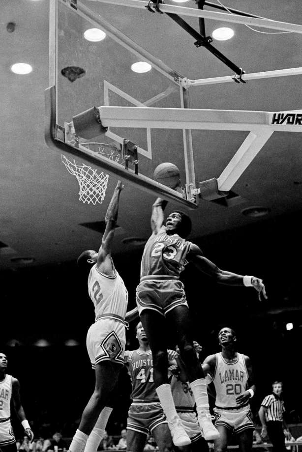 高中时,我就长到了6尺6(1.98米),所以在高三那一年,被安排打中锋位置。在一场对夏普斯城高中的比赛中,我豪砍34分27个篮板,一下子吸引了很多大学球队主教练的注意。最终,我选择了家乡球队休斯顿大学。