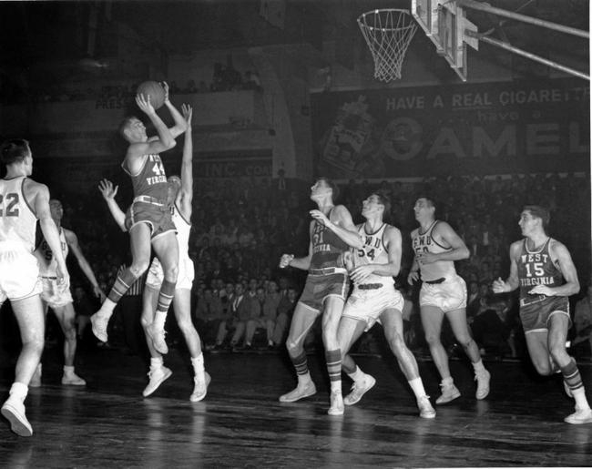 高中毕业后,超过60家高校向我伸出橄榄枝,最终我选择了家乡的西弗吉尼亚大学(WVU)。大一赛季我就率新生预备队17战全胜。升入校队后我遇到了恩师绍斯,他不仅为我带来了辉煌的NCAA生涯,日后也在湖人一直陪我到1967年。他塑造了我,包括在进入NBA后让我成功完成从前锋到后卫的转型。