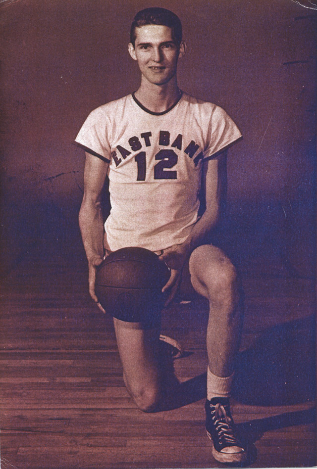 1952-1956年我就读于East Bank高中。高一赛季,校队教练杜克-沙夫曾以身高为由让我出任替补,但沙夫教练对训练和防守的重视却令我受益终生。很快地,我成为新生预备队的队长,个头也长到1.83米,最终被提为校队首发前锋。