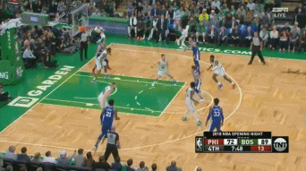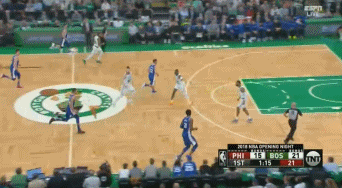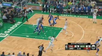 第二节还剩6分多钟,西蒙斯先是在中圈突破两名防守球员,然后在另外三名防守球员的注视下完成突破暴扣。这次进攻,西蒙斯等于是过掉了整个凯尔特人的防线。