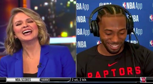 上一场猛龙不敌雄鹿的比赛中,莱昂纳德选择轮休,因此在本赛季他出战的比赛中,至今还没有遭遇过失败。今天再次大胜东部劲旅76人,让莱昂纳德兴奋不已。比赛之后美国媒体连线采访过程中,他戴上耳机接受采访时,一度哈哈大笑,完全放下了之前高冷的态度。