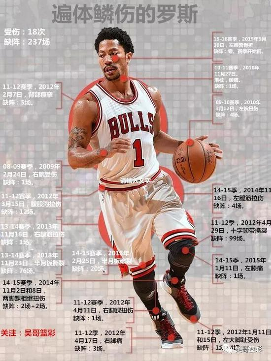 18次受伤缺阵237场 一张图看懂罗斯的遍体鳞伤