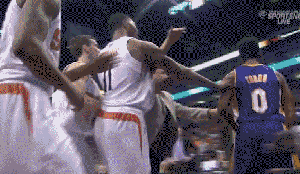 前几日泰森钱德勒在奉献了关键盖帽之后的庆祝动作是非常的霸气,有闲的蛋疼的网友把整个场景倒放,就变成了下面这样: