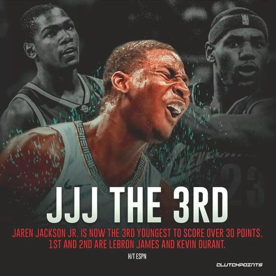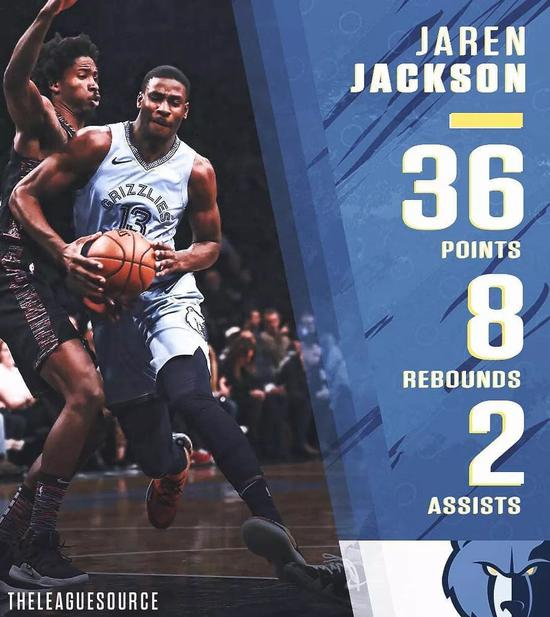 当小贾伦-杰克逊完成一记3+1和命中拖入加时的三分后,布鲁克林篮网的主场球迷鸦雀无声。他们没有想到这位刚满19岁不久的菜鸟有这么大的本事,一场36分的比赛让杰克逊打破特雷-杨保持的本届新秀单场得分记录、成为灰熊队史新秀单场第二高分、也成为仅次于詹姆斯的最年轻35分先生。