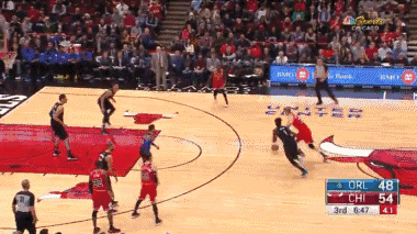 马尔卡宁代表公牛出战对阵魔术的比赛中,当时比赛进行到第三节的6分46秒,他持球突破到禁区之后,迎着武切维奇就是一记大力灌筐。