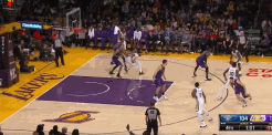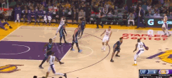 这一回合,杰迈克尔-格林突破布兰登-英格拉姆的防守试图杀向禁区,此时伊维察-祖巴茨直立在格林身前,他高高举起双臂无情封堵了对手的上篮;
