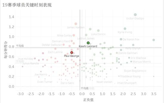 那谁更优秀?不好说。最新的进攻真实正负值上,伦纳德2.86,保罗乔治4.29,乔治已经超过了杜兰特和詹姆斯排在联盟小前锋第一。那就能说进攻端乔治大于伦纳德吗?不可以。