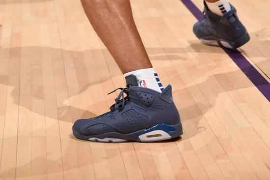今天布拉德利上脚了Diffused Blue配色的AJ6,这款鞋在一周前刚刚限量发售,鞋面很有质感和层次感,整体配色也很低调,和布拉德利的球风很是搭配了!