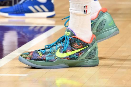 虽然蒂格因伤还未归队,不过在今天赛前他已经来到了场边热身,他脚上的哪双球鞋更是极为经典。