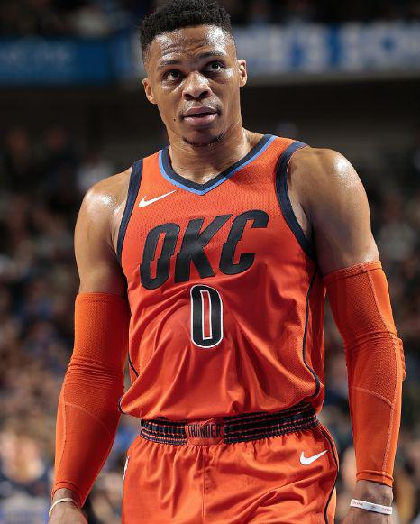 威少本赛季的低迷状态让人有些匪夷所思。保罗-乔治和卡梅罗-安东尼加盟之前,威少在2016-17赛季的场均数据为31.6分10.7篮板10.4助攻,并且成功当选常规赛MVP。
