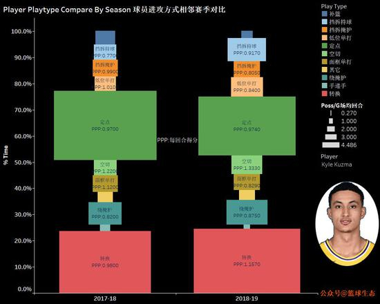 什么方式呢?以Synergy(数据分析机构)的球员进攻方式数据为基础,用全新方式展现,辅以其他数据参考。