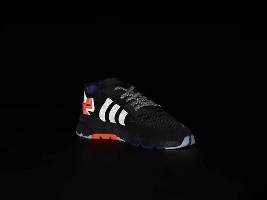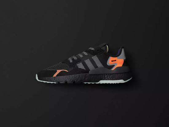 继早前在上海 INNERSECT 展览上释出,2019 年 adidas Originals 的首个重头戏来自全新的 Nite Jogger 鞋款。通过回溯最初的色彩设想,新款 Nite Jogger 的版本通过橙色搭配与全黑鞋面的对比形成强烈的视觉冲击。