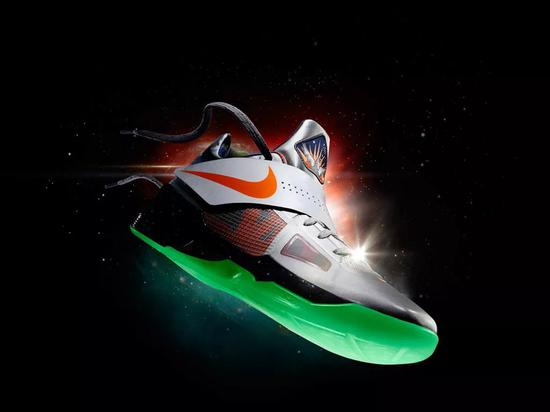 2012年的NBA全明星赛举办于魔术主场奥兰多安利中心,而Nike受太空探索的启发,以”银河“为主题打造了那一年的Nike Bastekball All Star系列,其中包括LeBron 9、KD IV和Kobe VII System等鞋款。