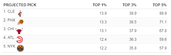 以上五支球队已经锁定前十的乐透签位
