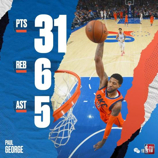 本赛季乔治的场均能拿到26.6分8板4助2.3断,出手、得分、篮板、助攻、抢断都是生涯新高。