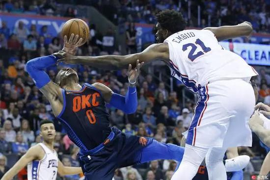 比赛中撞倒比赛后互怼,威少恩比德又结新梁子