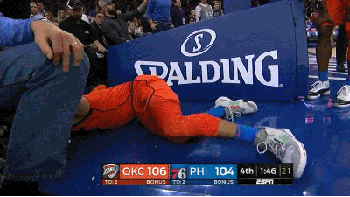 这一下可真不轻,威少一度倒地不起,