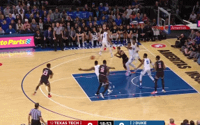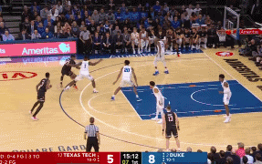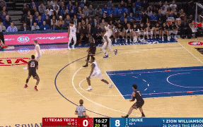 在杜克,锡安被安排持球进攻的戏份并不多——持球单打、持球背打和挡拆持球人三项加起来场均不过4.1个回合,只占到了整体进攻的24.4%。更多的时候,他都安插到了弱侧底角的位置,以空切和冲抢进攻篮板的形态出现在人们的视线之中。