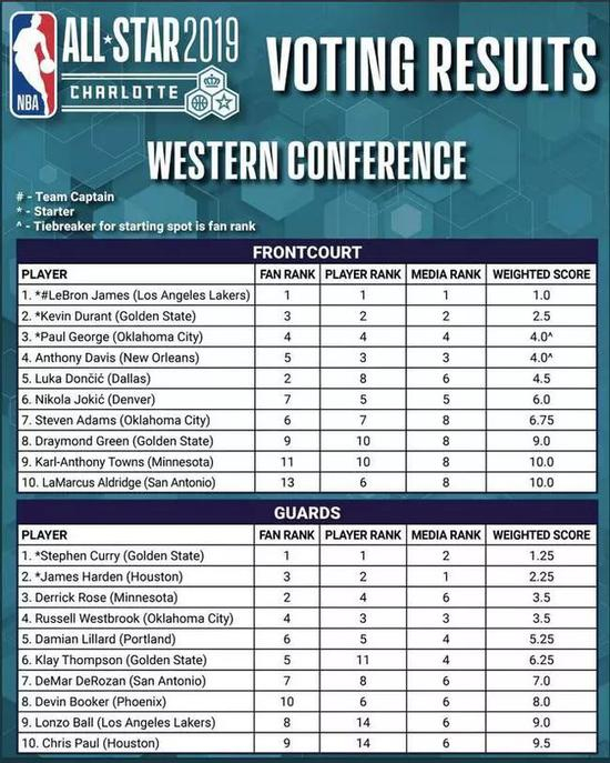 与在球迷中火爆人气形成鲜明反差的是,媒体没有顺应潮流选择力捧19岁的卢卡-东契奇。他在媒体投票环节中的得票数仅仅位列西部前场第六位,而之后的球员投票结果更为糟糕,没有得到足够认可的卢卡-东契奇只排在了第八位。最终综合球迷、媒体以及球员的投票,卢卡-东契奇的排名跌至西部前场的第5位,无缘全明星赛的首发。