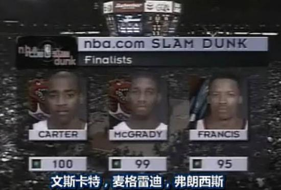 卡特的这个动作毫无悬念的得到了50分,最终,卡特、麦蒂和弗朗西斯携手进入第二轮。