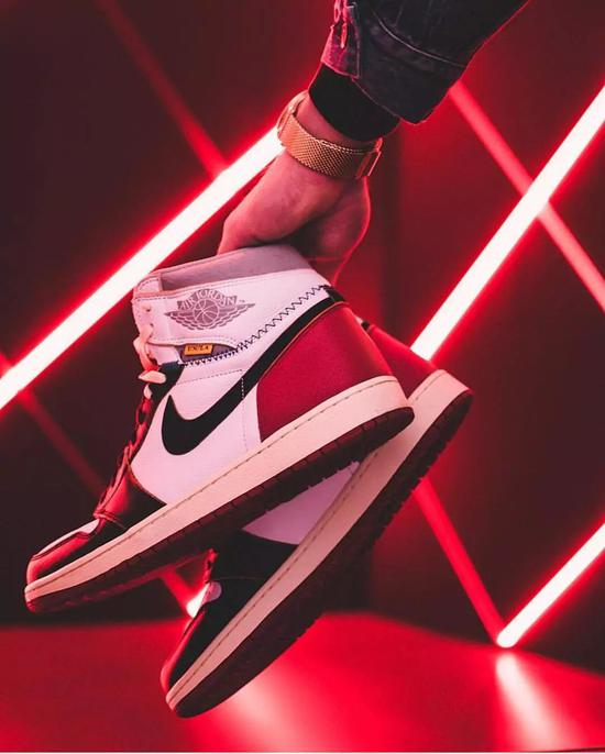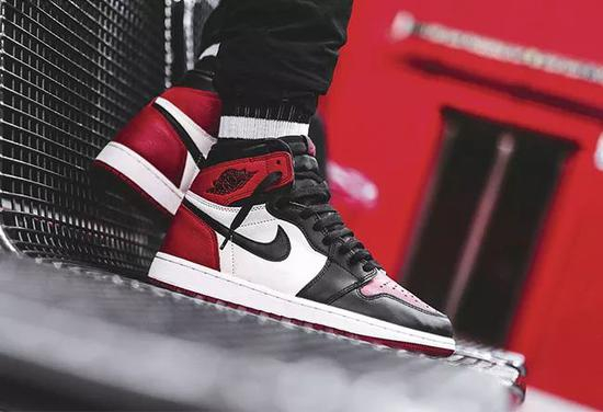 将黑红与黑脚趾相结合的配色设计,再加上当时 Air Jordan 1 在球鞋圈如日中天的地位,让无数球鞋玩家为之倾倒,即使货量不少,也在发售之后不到半年的时间里身价翻了三倍。