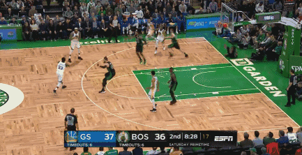 等到库里第二节重新登场,他的表现和第一节完全不同。在本节前半段的2分钟时间内,库里连续投进4个三分,帮助勇士将领先扩大到7分,并迫使凯尔特人叫了暂停。