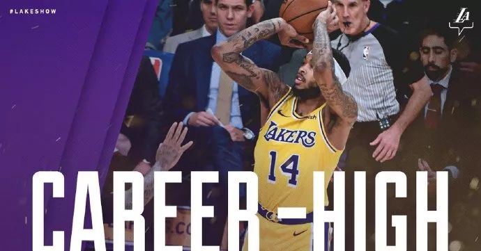 随后湖人命中率下降,76人越打越顺,进行到比赛还有5分钟时,湖人已经落后多达17分,逆转概率越来越小。麦基打出2+1,波普飙中高弧度三分,莺歌后仰跳投,湖人一波8-0追到只差个位数,同时莺歌也刷新了自己职业生涯单场最高得分。