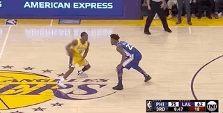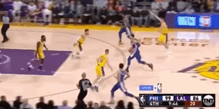 第四节湖人在两分半钟的时间内打出8-3的高潮追到只差10分,恩比德因为一次空接失败闪到了自己的腰部,随后返回了更衣室,但好在没有大碍。