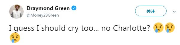 格林在推特上写道:“我猜我也应该哭。就因为去不了夏洛特?(3个流泪的表情图)”