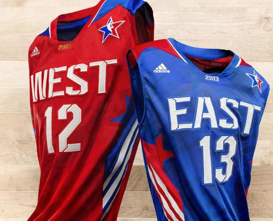 太空城原创的“上下双色”全明星球衣,再次强调了蓝、红主色代表东西部的概念