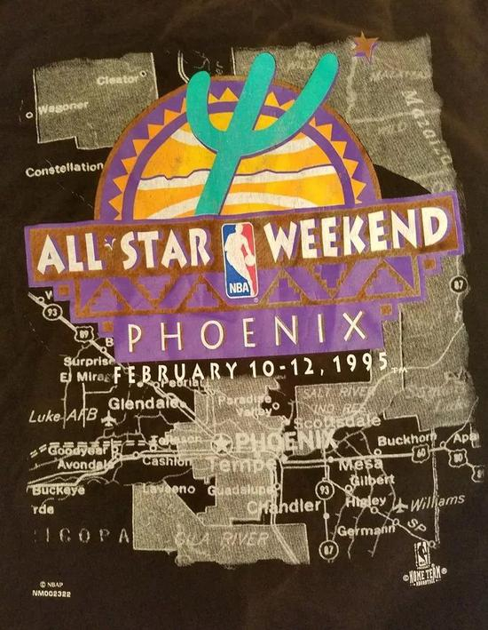 看过昨天推送的各位可能会有印象,1975年菲尼克斯全明星球衣的大面积紫色,开了全明星球衣上色彩丰富的先河。而时隔20年后,全明星再度回到“凤凰城”,这次菲尼克斯人又一次交出了最靓丽的设计——经典的1995全明星球衣“大仙人掌”闪亮登场。