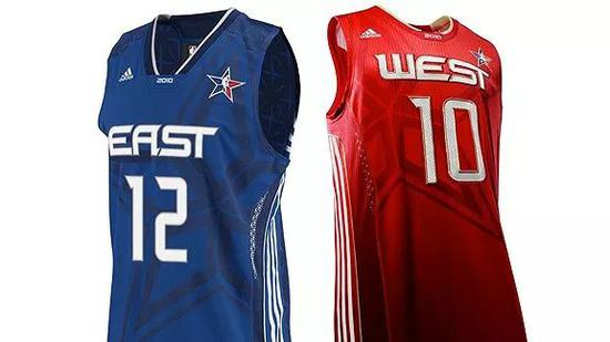 2010年的达拉斯全明星不单开创了把篮球比赛搬上橄榄球场地,吸引足以创造吉尼斯世界纪录的观赛人数的先河,而且还首次摒弃了传统的浅、深色球衣区分主客场传统,设计出了红蓝纯色全明星球衣。