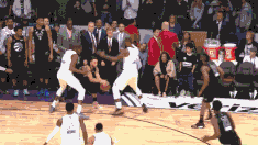 终于,这种设计上的“减法”和创意的贫瘠,在2015年的纽约全明星上达到了一个峰值。我们看到这届由尼克斯和入驻布鲁克林不久的篮网合办的全明星赛上,球员们身上的球衣呈现出了从颜色到设计元素等各方面的“极简主义”。