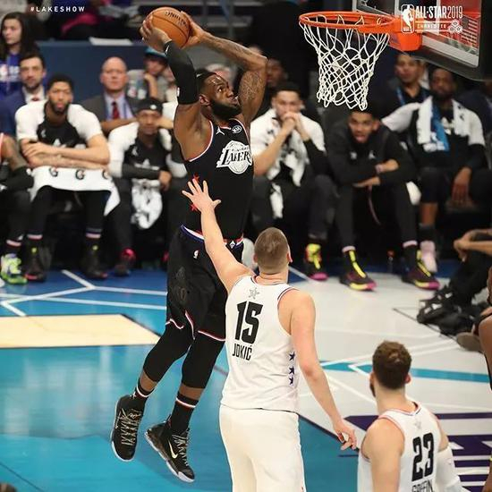 詹姆斯在第二节还剩5分钟时贡献本场个人第一个快攻暴扣,作为队长,以身作则开始发力,连续砍分打停字母哥队。