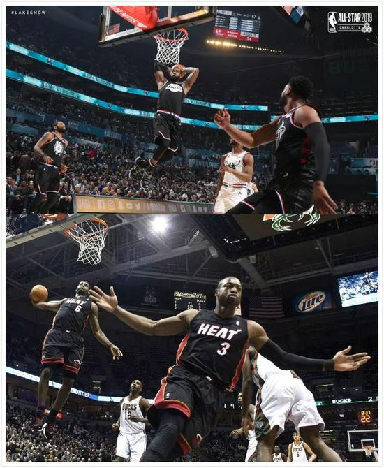 随后韦德快攻高抛打板,詹姆斯跟上双手扣进。詹韦连线,终于来了。韦德也完成了他此次全明星的任务,他曾面对媒体说过,这届全明星自己最想完成的,就是与老詹来一次最后的连线。