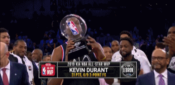 勒布朗这次最终是没有拿到MVP奖杯,被杜兰特那小子获得了。去年杜兰特帮助詹姆斯拿下全明星MVP奖杯,今年詹姆斯则帮阿杜圆梦。