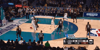 詹姆斯今天没有多大的进攻欲望,直到首节进行到一半时间才踉踉跄跄地转身打进两分。