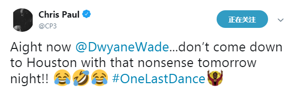 明天将是保罗和韦德的NBA生涯最后一次碰面,保罗放弃了背靠背轮休,并透露他将与韦德在明天交换球衣。